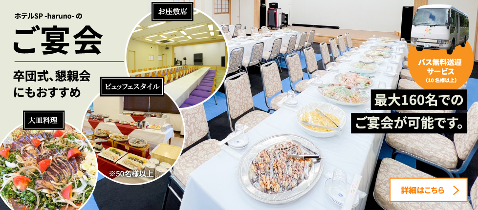 地元春野産の食材を多数使用し、料理長が腕によりを掛けて作り上げる和食夕食が付いた2食付きのプランです。